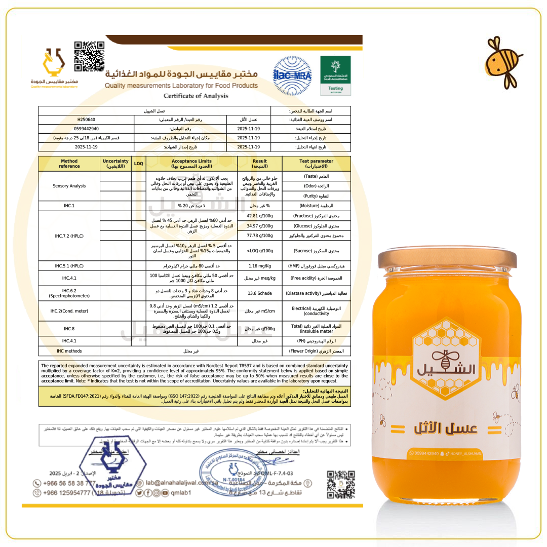 اختبر طعم عسل الاثل الذهبي المميز ونقاوته العالية من أزهار الأثل كما يمكنكم الاستمتاع بقوامه والنكهة التي لا تُقاوم مع عسل طبيعي معبأ بكل عناية.