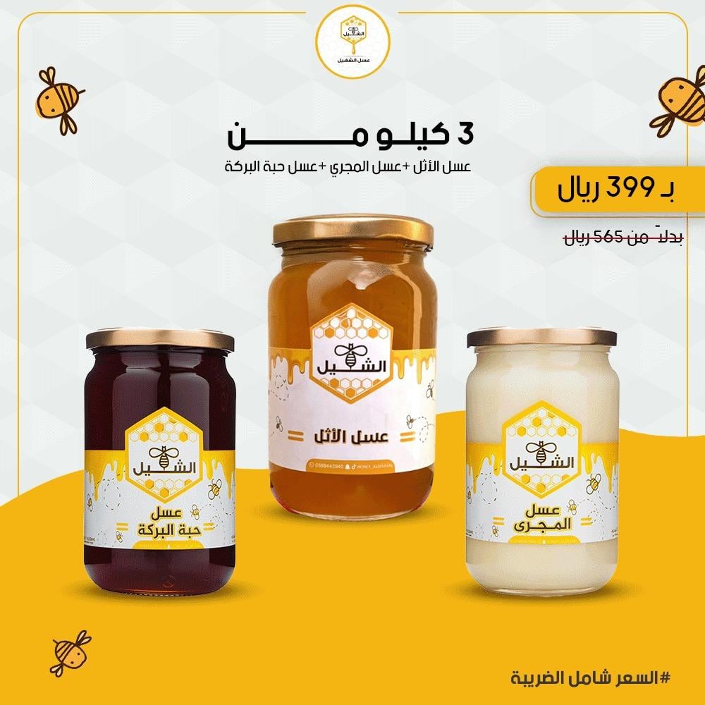 استمتع بتنوع رائع و نكهات غنية مع عروض العسل الطبيعي مكون من عسل الاثل وعسل من متجر عسل الشهيل. هذا العرض الخاص يتضمن ثلاث عبوات من كل نوع بوزنكيلو لكل عبوة، مما يمنحك مجموعة واسعة من الخيارات لتجربة طعم العسل الفاخر والجودة العالية.